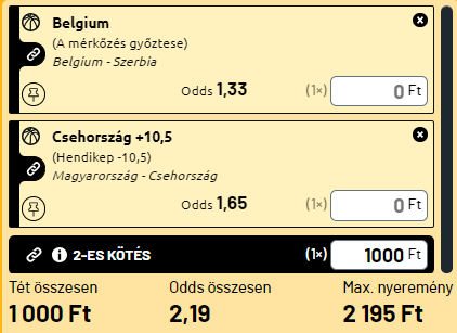 - Magyarország – Csehország: Nagyon jól kosaraztak, Határ Bernadett és Kis Virág vezetésével időnként, különösen a szerbekkel szemben klasszis teljesítményt nyújtottak. De engem zavar kicsit a törökök elleni megingás! Akit a csoport másik két tagja megvert, csak mi szenvedtünk vereséget és azon a találkozón akadozott a játék. A csehektől előzetesen nem vártak továbbjutást a szakértők, de ennek ellenére sikerült Belgium mögött továbbjutni. Ez a szép siker biztos, hogy motiválni fogja őket és emiatt, illetve a magyar átok miatt, miszerint tétmeccsen kiesési szakaszban nagyon ritkán játszunk jól, koncentráltan, szoros meccset várok. Nem lesz 10 pont különbség, akárki is nyer. Bízom benne, hogy ezek mi leszünk, de a tippem +10,5-es hendikeppel Csehország nyeretése.