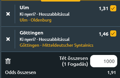 - Ulm – Oldenburg: Az Ulm a leghatékonyabban támadó férfi kosárlabda csapat a német első osztályban. Abszolút run and shot stílust játszanak, a formájuk is kitűnő. Az elmúlt öt bajnokin egy vereség a mérleg a Bayern München ellen szenvedték el. Az Ulm az 5. cél a rájátszás negyeddöntője. Az Oldenburg a 9. helyen áll. Védekezésben nem rosszak, sőt semmiben nem maradnak el az Ulmtól, viszont támadási hatékonyságban nagyon! Ez pedig azt jelenti, stabil hazai győzelmi esély van! Meccsgyőzelem Ulm a tipp!