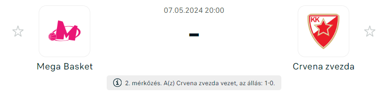 Az ABA Liga kosárlabda-sorozat elődöntőit játsszák, ahol a második meccsen csap össze a Mega Basket és a Crvena Zvezda. A két csapat között a hasonlóság kimerül abban, hogy mindkettő belgrádi csapat, a különbség viszont minőségben óriási! A sorozat két nyert meccsig tart!