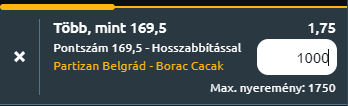 - Rendkívül gyors, dinamikus és pontgazdag mérkőzésre számíthatunk, a Partizan valószínűleg mindent belead majd a Borac ellen. A vendégeket viszont szintén minőségi támadójátékot nyújtanak, úgyhogy itt ma az over oldaláról kell közelíteni! Lesz 170 pont a meccsen.