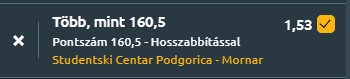 - A két csapat mérkőzésein jellemzően sok pont születik, és ezúttal is hasonlóra lehet számítani. A Studentski Centar hárompontos dobásai javuló tendenciát mutatnak, és Neal kiemelkedő formában van. Mornar gyenge védekezése várhatóan nehezen állítja meg a hazaiak támadásait. Emellett a Mornar új igazolásai fokozzák pontszerzési potenciáljukat, így valószínű, hogy mindkét csapat gyors tempót diktál majd, ami sok pontot eredményezhet.