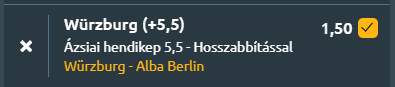 - A Würzburg ott folytatja, ahol tavaly abbahagyta: az előző szezon elődöntős teljesítménye után most is remekül rajtolt, és Sasa Filipovski vezetőedző irányítása alatt megőrizte játékstílusát és szervezettségét. A folytonosság meghozta gyümölcsét, hiszen a távozók ellenére ismét erős hátvédsort sikerült kialakítani, amely főleg a hárompontos dobásokban és a támadópattanók megszerzésében jeleskedik. Ezt bizonyította a Bajnokok Ligájában aratott győzelem is a Trieste ellen, ahol a csapat intenzív védekezéssel, 42–30-as lepattanóaránnyal és kiemelkedő triplamutatóval diadalmaskodott. A siker kulcsfigurái Davion Mintz (24 pont, 5 hárompontos) és Marcus Carr (14 pont, 6 gólpassz) voltak, míg a bajnokságban Brae Ivey döntötte el a legutóbbi meccset. Az egyetlen aggodalom a sűrű menetrend, hiszen ez lesz a negyedik találkozó tíz napon belül. Ezzel szemben az Alba Berlin szezonkezdetét inkább hullámzás jellemzi. A klub jelentős átalakuláson ment keresztül, az Euroligát elhagyva a Bajnokok Ligájában folytatja, és az új edző, Pedro Calles még építi csapatát. Bár a potenciál megvan, különösen a tapasztalat és a támadópattanók terén, az együttes védekezése ingadozó, főként a hárompontos vonalon: meccsenként mintegy 27 triplakísérletet enged az ellenfeleknek. Ez a hiányosság a Chalon/Saone elleni 76–81-es vereségben is megmutatkozott. A berlini gárdában Rejean Ellis volt a legjobb a franciaországi mérkőzésen, mellé jól illeszkedik a rutinos Martin Hermannsson, míg a palánk alatt az új szerzemény Norris Agbakoko hoz atletikus erőt és energiát, amelyet Justin Bean és a visszatérő Moses Wood egészítenek ki. Tőlük, valamint Sam Grieseltől is többet várnak a folytatásban. A mérkőzés előtt a hazaiaknál Alen Pjanic játéka kérdéses betegség miatt, míg az Albánál Martynas Echodas hiányzik. Mindezek alapján Würzburg kedvező helyzetből várja az összecsapást: az Alba Berlin gyengébb tripla-védekezése jól illik a hazaiak stílusához, és ha Mintzék jó dobóformát fognak ki, esélyük van a győzelemre, különösen a palánk alatti fizikai fölényükre támaszkodva, de a biztonság kedvéért kicsi plusszos hendivel megerősítjük őket!