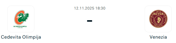 Két jó formában lévő csapat találkozik Ljubljanában, a Cedevita Olimpija lendületben és önbizalommal telve várhatja a mérkőzést, míg a Venezia idegenben eddig nem tudta ugyanazt a teljesítményt hozni, mint hazai pályán.