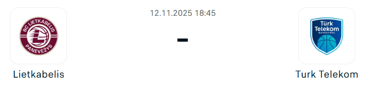 Két ellentétes formában lévő csapat találkozik Panevėžysben, a sorozatban öt vereségnél járó Lietkabelis hazai pályán próbálja megállítani negatív szériáját, míg a jó formában lévő Turk Telekom újabb győzelmet szeretne szerezni a Eurokupában.