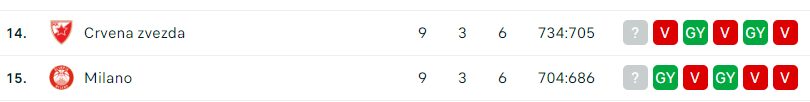 - Ahogyan múlnak a fordulók az idei szezonban, úgy lett a Zvezda játéka egyre jobb és jobb, bár voltak olyan mérkőzések is, ahol a mutatott játék nem állt párhuzamban az eredménnyel. Az idei szezonban 3GY és 6V a mérleg, ami így első látásra nem tűnik jónak, de minden egyes vereség szoros volt és játékban abszolút pariban volt a Zvezda! Csak egy kis szerencse kellene még, ahhoz, hogy nagyságrendi előrelépés legyen. Ioannis Sfairopoulos mesternek így is van gondja elég, hiszen több kulcsjátékosa sérülés miatt nem elérhető. Kimarad Shabazz Napier, Hanga Ádám és Branko Lazić is. Emiatt a pályára lépő fontos játékosokra sokkal több felelősség hárul, sokkal jobb teljesítményre van szükség Milos Teodoszics, Nemanja Nedovics vagy épp Jago do Santos esetében. Egy biztos, hazai pályán a sok ezer szenvedélyes, szurkoló előtt mindig nagyon fel van pörögve a Zvezda, ez ma sem lesz másképp! Nagyon nehéz dolga lesz a Milánónak, hiszen mentálisan, akaratban és fizikálisan minimum egy szinten lesz velük a szerb gárda, ha pedig játékban is kijön nekik a lépés, akkor vereséggel mehetnek haza az olaszok.
