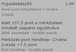 Lesz ma még egy remek fogadási lehetőség az Euroliga meccsek között. A legutóbb harmincpontos győzelmet arató Crvena Zvezda ma Lyonba látogat. Van egy jó tippem a meccsre!