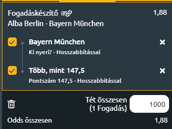 - Az egyéni kvalitások és a tapasztalat a Bayern oldalára billenti a mérleg nyelvét, a hazai pálya és az elszántság és győzelmi motiváció a hazaiakéra. A Bayern erőfölénye van akkora, hogy ma győztesen hagyják el a parkettet és számíthatunk minimum 148 pontra is. A megújult Tippmixprón 1,88-as szorzót kínálnak ezért a kombóért!