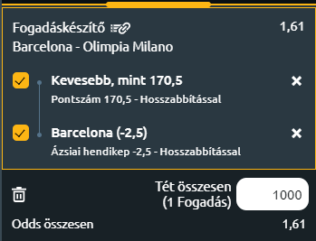 - A Barcelona az abszolút favoritja ennek a mérkőzésnek és a remek védekezés-faktor miatt az under oldaláról kell közelíteni. A múlt heti dupla Euroliga-forduló után a Barca két bajnokit is letolt, így némiképp fáradt lesz. De a fáradtság kezelésére remek eszközök állnak rendelkezésre. Nem gondolom, hogy ez a négyes sorozat lelassítja a Barcát.