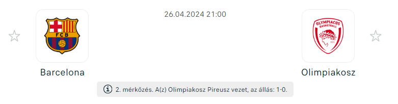 - A Barcelona nem játszott jól az első összecsapáson. A legtöbb kulcsjátékosuk megingott. Jan Vesely három, Nicolas Laprovittola kilenc pontot szerzett, míg Tomas Satoransky egyetlen pontot sem jegyzett. Jabari Parker és Willy Hernangomez azon kevés játékosok közé tartozott, akik jobbak voltak, de kevesen voltak hozzá. A csapat a meccsen 17 alkalommal adta el a labdát! Roger Grimau csapata leszerepelt, megérdemelten kaptak ki, ha ma nem tudnak javítani, akkor Pireuszban vajmi kevés esélyük lesz 0-2-ről fordítani.