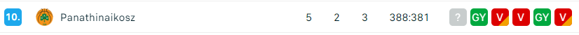 - A Panathinaikosz ebben a szezonban még nem érte el optimális formáját, aminek eredménye a jelenlegi 2-3-as mérleg. Három vereségükből kettő szoros, és nem lenne érdemtelen, ha ezeken a meccseken győztesként kerültek volna ki. A legjobb teljesítményüket a múlt héten nyújtották, amikor Ergin Ataman csapata 95-81-re legyőzte a Baskoniát az OAKA Arénában. Remekült támadtak, és könnyedén szerezték a pontokat az egész mérkőzésen. Mathias Lessort volt a mérkőzés kiemelkedő játékosa, látványos dupla-duplát szállított 23 ponttal, 14 lepattanóval és két blokkal. Várhatóan Lessort a Panathinaikosz egyik kulcsembere lesz a következő mérkőzéseken.