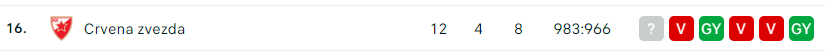 - A Zvezda nagyon rossz formában van idén, idegenben még mindig nincs egyetlen győzelmük sem ebben a szezonban. Az Euroligában szinte minden Crvena zvezda-mérkőzés egyforma, különösen az idegenbeli meccsek. Minden meccsen nagyon lassan és körülményesen lépnek pályára, ahol az ellenfél nagy előnyre tesz szert, majd sikertelenül próbálnak felzárkózni. Így volt ez a Valencia ellen is, ahol az első félidőben 56 pontot is kaptak, és 16 pontos hátrányba kerültek. Védekezésben gyengén teljesítettek, főleg az első játékrészben. Utána már hiába javulnak, az elrontott első játékrész megpecsételi sorsukat. Teodosicnak volt egy dobása a vezetés megszerzésére, de kihagyta, így a Valencia nyert. Az önbizalomhiány, a sérülések mind hozzájárultak ahhoz, hogy a Zvezda az Euroliga egyik legrosszabb csapata. Különösen aggasztó Napier formája, akit azért hoztak, hogy vezére legyen a csapatnak, és sem támadásban, sem védekezésben nem tudja felvenni a ritmust.