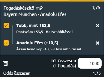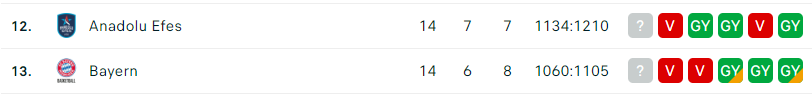 - Az Efesnek nagy gondot okoznak a sérülések, valamint a meghatározó játékosok, különösen Larkin fáradtsága, ami kihathat a támadójátékára. A Bayern hullámzóan játszik, de otthon nagyon erősek. A Bayern az erősebb, de 10 pontnál nem raknak közé többet! A pontok tekintetében pedig legalább 154 pontot várhatunk.