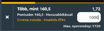 - Szoros meccs lesz ez. Annak ellenére, hogy a Zvezda nem teljesít jól az utóbbi időben, védekezésben még mindig jobbak, mint az Anadolu, ez pedig kulcsfontosságú lehet a mai meccsen. Az Anadolu viszont nagyon erős támadásban, ezért a pontokra érdemes inkább rámenni. Várhatóan túldobják a 160 pontot a meccsen.