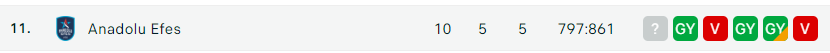 - Az Anadolu Efes gyengébben kezdte a szezont, de fokozatosan formába lendült, és az utolsó négy mérkőzésen három győzelmet aratott. Jelenleg a 11. helyen állnak kiegyensúlyozott 5GY – 5V mérleggel. Az Anadolu Efes legfontosabb támadói közé tartozik Shane Larkin és a hatékony Will Clyburn, védekezésben pedig Darius Thompson és Rodrigue Beaubois a vezér. Ők ketten megkönnyítik Larkin munkáját a pontszerzésben. Az olyan játékosok sérülése, mint Derek Willis és Ante Zizic, valamint a Pleiss Tibor körüli bizonytalanság kihívások elé állítja Erdem Can edzőt. A közelmúltban az Anadolu Efes szerződtette Mike Daumot, a korábbi Tortona-játékost, aki várhatóan bővíti a rotációt a csatár és center poszton.