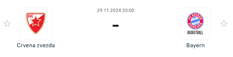 - A Crvena Zvezda hazai pályán, a belgrádi közönség támogatásával lép pályára, ami mindig előnyt jelent számukra. Azonban a Zvezdának fel kell javítania védekezését, különösen a lepattanózás terén, hogy megakadályozza a Bayern gyors támadásait és ez nem biztos, hogy ebben a gyengébb formájukban sikerülni fog! Ha nyer is a hazai csapat, nem lesz sok közte. +11,5-es hendikeppel a Bayernt nyeretem, a pontokat pedig 173,5 alá lőttem be.