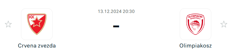 - A belgrádi csapat jelenleg a tabella 10. helyén áll, 7 győzelemmel és 7 vereséggel. A csapat legutóbbi mérkőzésein felemás eredményeket ért el. Előbb Milánóban vereséget szenvedett, majd Bolognában sikerült győznie. A legnagyobb kihívást az jelenti számukra, hogy Filip Petrusev, aki az utóbbi időszakban kiemelkedően teljesített, nem léphet pályára az Olympiakosz ellen, mivel a görög csapattól kölcsönben játszik náluk. Petrusev kiesése óriási érvágás, hiszen a pontjai és a jelenléte kulcsfontosságú a csapat számára. Pozitívum, hogy az új igazolás, John Brown csatlakozott a csapathoz, és várható Joel Bolomboy visszatérése is, ami tovább erősítheti a centerposztot. Ognjen Dobric formája folyamatosan javul, és értékes csapattársként komoly szerepet játszik a támadások és védekezés során. A Zvezda erőssége a hárompontos dobásokban rejlik, ahol a liga harmadik legjobb csapata, valamint a kreatív irányítójátéknak köszönhetően kiemelkedik a gólpasszokban. Ugyanakkor gondot okoz a védőlepattanók biztosítása és az ellenfelek támadólepattanóinak kivédése.
