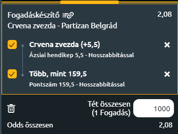 - A két csapat közelmúltbeli találkozói pontgazdag mérkőzések voltak. Az idei szezonban lejátszott két találkozójukon összesen 174 és 185 pontot szereztek, így arra számíthatunk, hogy ez a tendencia ma is folytatódni fog. Legalább 160 pontot várhatunk és a Zvezdát megtámogatva kis pontelőnnyel nyerethetjük.
