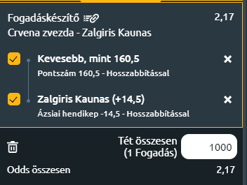 - Nagyon fontos meccs ez mindkét csapat számára, hiszen mindketten a playoffra hajtanak. A Zalgiris kiválóan védekezik, a Zvezdának muszáj lesz felzárkóznia ebben, mert különben vereség lesz a vége. Mindenképpen under-oldalról kell közelíteni és a litvánok lendülete miatt őket nyeretem plusszos hendikeppel.