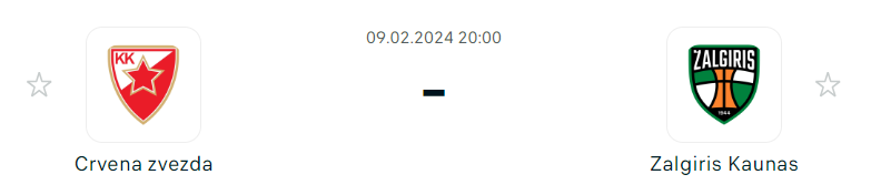 Az Euroliga 26. fordulójában a Crvena Zvezda és a Zalgiris csap össze Belgrádban, a Stark Arénában.