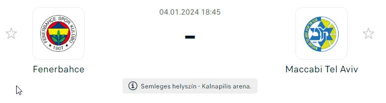 - A legutóbbi fordulóban a Fenerbahce hazai pályán szenvedte el első vereségét a szezonban a liga egyik legrosszabb vendégcsapata, a Crvena zvezda ellen. Ez volt egyben a Fener első veresége, mióta a litván szakember, Sarunas Jasikevicius edzősködik. Az Euroliga nagyon nehéz döntést hozott, ami minden bizonnyal lázadást váltott ki a Fenerbahçe szurkolói és vezetősége körében. A feszült izraeli-török viszony és az izraeli háború miatt ezt a meccset Litvániában játsszák, ami minden bizonnyal jobban fekszik a Maccabi játékosainak, hiszen Isztambulban a Fener ebben a szezonban csak egyszer kapott ki. A Fenerbahce 10-8-as mérleggel áll, és mindössze egy győzelemmel van kevesebbjük, mint a negyedik helyen álló Maccabinak, így egy győzelemmel döntetlent érnének el a tel-avivi csapattal. Szintén fontos tényező a kölcsönös kosárarány, hiszen előnyt jelent, ha a csapatok azonos pontszámmal állnak a végén. Az első mérkőzésen a Maccabi volt eredményesebb négypontos különbséggel. Nagyon tehetséges csapatuk van, amely gyakran tudja, hogyan kell ellenritmusba kerülni. A Crvena zvezda ellen a harmadik negyed közepéig abszolút kontroll alatt tartották a meccset, aztán idegesek lettek, amit a belgrádiak kihasználtak. Elveszítették a meccset, ráadásul az egész mérkőzés alatt 50% feletti volt a hárompontosok dobási százaléka. A Maccabi ellen maximálisan koncentrálniuk kell, különben keményen megbünteti őket a Maccabi.