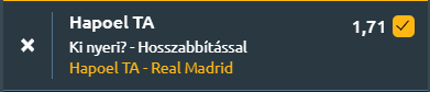 - Figyelembe véve Hapoel Tel Aviv remek formáját, rendkívül hatékony támadójátékát és a Real Madrid jelenlegi bizonytalanságát, a várakozások szerint a hazaiak ismét dominálni fognak, és megszerzik a győzelmet!