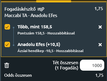 - Mivel az Anadolu csapatában sok a sérült, így a játékosok sokkal többet játszanak, ráadásul rendkívül nagy energiával, rengeteg futással. Minden azon múlik ma, mennyire fogják bírni a törökök. A Maccabi sokkal pihentebb, a kerete bővebb, viszont egyéni kvalitásban talán kicsit jobbak a törökök. A Maccabi inkább támadásban jó, a védekezés nem működik annyira kompaktul, a Larkin-vezette Efes pedig bikamód támad! A végére elfáradhat a török gárda, így a Maccabi fel fog jönni. Sok pontot várhatunk ma és bár esélyesebb a győzelemre a Maccabi, nem lesz ez a meccs olyan sima, ahogy a bukik várják. Szerintem 10 pontnál többet nem raknak közé! A tippem tehát Anadolu Efes +10,5 ÉS több mint 158,5 pont a mérkőzésen.