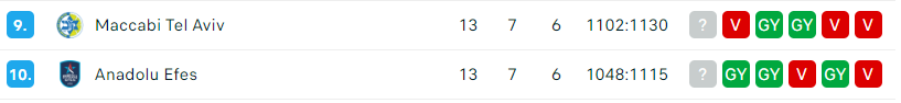 - Az idei szezonban eddig az izraeli háború miatt a Maccabi csak az Euroligában játszotta mérkőzéseit, a hazai bajnokság szünetelt, így sokkal több idejük volt a regenerálódásra és az edzésmunkára. A múlt héten viszont folytatódott az izraeli bajnokság, és a Maccabi legyőzte a Bnei Herzeliyát. Belgrádban játsszák a meccseiket, szurkolók nélkül. Ez most sem lesz másképp. Ez a helyzet valamit levon a Maccabi esélyeiből, hiszen zsúfolt hazai lelátók előtt mindig sokkal motiváltabb játszani, mint üresen kongó csarnokban. Az előző héten, amikor dupla fordulót rendeztek az Euroligában, a Maccabi félsikert aratott. Előbb az Asvelt verték, majd a Virtustól kaptak ki, ráadásul mindkét meccset idegenben játszották. A Maccabi az előző szezonokhoz hasonlóan támadó kosárlabdát játszik, de védekezésben nem állnak jól, pedig rengeteg potenciál van bennük ahhoz, hogy igazi védekező erővé váljanak. A védekezés nagyban függ a Brown-Baldwin hátvédtandemtől, akik ebben a szezonban sérülésekkel küzdenek. A Maccabitól sokkal többet vártak ebben a szezonban, de nyilván a háború rányomja a bélyegét az eredményességre. A csapat jelenleg 7-6-os mérleggel a kilencedik helyen áll, akárcsak az Anadolu Efes. A mai meccs jó lehetőség Oded Kattash csapata számára, hogy nyerjen, és kihasználja az Efes hiányzói miatti szűkebb keretét.