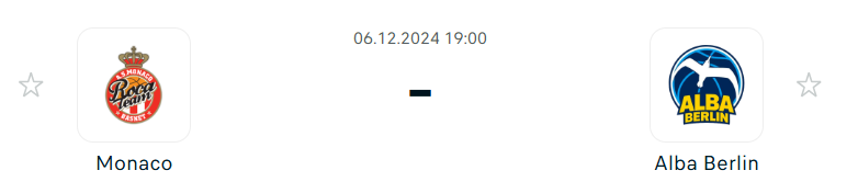 - Az Alba Berlin idényének eddigi legnagyobb szenzációja a Virtus elleni idegenbeli győzelem, amely a szezon első idegenbeli sikere volt számukra. Ez mindössze a harmadik győzelmük a szezonban, amivel elmozdultak az utolsó helyről. Az Alba teljesítménye összességében azonban gyenge: támadásban a liga legrosszabb mutatóit produkálják, míg védekezésben is a harmadik legrosszabbak. A csapatnál komoly sérülési problémák vannak, egyetlen játékos sem játszotta végig mind a 13 Euroliga-meccset. A legponterősebb játékosuk Martin Hermannsson (13,4 pont/mérkőzés), őt Trevion Williams (11,9 pont) és az olasz Matteo Spagnolo (11,5 pont) követik. A csapat, amelyet Israel Gonzalez irányít, legfeljebb reménykedhet egy újabb kiugró teljesítményben, de minőségi szinten messze elmaradnak a Monaco mögött.
