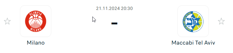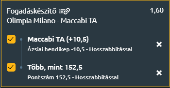 - A Milano favoritként lép pályára, azonban Maccabi képes lehet szoros mérkőzést játszani. Milano ugyan mutat javulást, de ingadozó formájuk és Josh Nebo hiánya sebezhetővé teszi őket, különösen a festékben. Ez lehetőséget ad a Maccabinak, hogy kihasználja a palánk alatti előnyét és gyors tempójú játékával próbálja meg szorossá tenni a meccset. Maccabi a szezon során már többször is megmutatta, hogy a végjátékig képes szoros eredményt tartani. A Milano formája javuló, de nem annyira domináns, hogy jelentős különbséggel verje a vendégeket. Ezért reális esély van rá, hogy a Maccabi hendikeppel jó lehet egy fogadásra.
