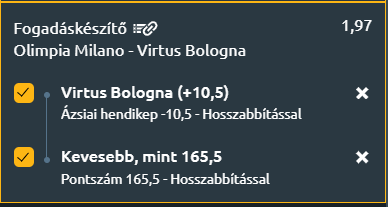 - Viszont ez egy igazi olasz rangadó az ősi rivális ellen! Ilyenkor aztán fel lehet támadni, sutba lehet dobni a korábbi rossz emlékeket és eredményeket és lehet bizonyítani. Szoros meccset várok, amelyben sok múlik majd Mirotic és Shengelia párharcán. Mivel szoros meccset várok egy komolyabb hendivel a Virtust segítem, valamint a Milano bivalyerős védekezése miatt az under-oldalról közelítek.