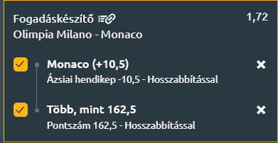 - A Milano hazai pályán sokkal jobban teljesít, és mivel győzelmi kényszerben vannak, minden bizonnyal támadó felfogásban lépnek pályára. A Monaco ugyan esélyesebb csapat, de az utóbbi időszakban gyakran hibázott! Mivel mindkét csapat főként támadásban erős és a Milano védelme az egyik leggyengébb az Euroligában, gyors tempójú és pontgazdag mérkőzésre lehet számítani. Nyerhet otthon a Milano, de nem rak közé 10 pontnál többet, és minimum 163 pont várható.