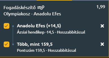 - Az Olympiakosznál a szezon elején számos sérülés nehezítette a játékot, így a hátvédsor jelentős része hiányzik, köztük Keenan Evans, Thomas Walkup és Evan Fournier, de az újonnan érkező Frank Ntilikina és Tyler Dorsey stabilizálni próbálja az irányítást. A csapat legutóbbi meccse a Dubai ellen biztató jele volt annak, hogy képesek koncentrált, kiegyensúlyozott teljesítményre, ám a Forma-ingadozások továbbra is fennállnak, amit a korábbi Real Madrid elleni összeomlás mutatott. Anadolu Efes viszont sérülés szempontjából jobb helyzetben van, hiszen csak Vincent Poirier hiányzik, és az új igazolások, Jordan Loyd, Nick Weiler-Babb és Isaia Cordinier, valamint Shane Larkin visszatérése komoly erősítést jelent a törökök számára. Bár az Efes lassabb tempót játszik, és a hárompontos hatékonyságuk még nem ideális, a kétpontos dobásokban kiemelkednek, és az eddigi teljesítményük alapján képesek lehetnek megszorongatni az Olympiakoszt. Az előzmények és a jelenlegi keretek alapján szoros mérkőzés várható, ahol a hazai pálya előnye ellenére az Anadolu Efes erős, koncentrált játékával komoly kihívást jelenthet, így a törököket nagyobb plusszos hendikeppel megerősítve nyerthetjük, valamint minimum 160 pontot várhatunk.