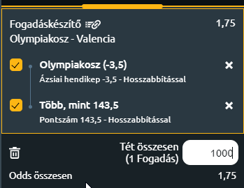 Annak ellenére, hogy a Valencia az utóbbi két mérkőzésen remek teljesítményt nyújtott, az Olympiakosz abszolút favoritnak számít a mérkőzés megnyerésére. A játékoskeret minőségben, mélységben abszolút a spanyolok fölé nő és hazai környezetben különösen erősek. Várható akár a kétszámjegyű görög győzelem is! De a tipp biztonsági: Olympiakosz -3,5 és több mint 143,5 pont a mérkőzésen.