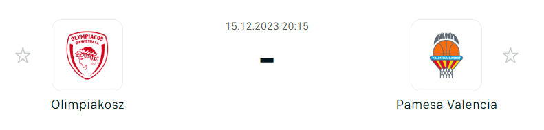 Az Euroliga 14. fordulójának egyik zárómérkőzésén, az Olympiakosz és a Valencia csap össze a Béke és Barátság Stadionban. Az Euroliga aktuális tabelláján jelenleg egymás mellett állnak a 8. és a 9. pozícióban.