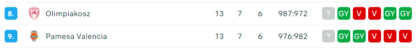 - A Valencia az elmúlt héten lezárta rossz formáját. A Crvena zvezdát otthon 85-81-re, az Asvelt pedig idegenben 78-55-re győzték le, véget vetve ezzel ötmeccses vereségsorozatuknak az Euroligában. Ezeken a mostani mérkőzéseken a Valencia kiváló védekező játékot mutatott be, folyamatos agresszivitást mutatott, és megakadályozta, hogy az ellenfelek könnyű kosarakat szerezzenek. Ki kell emelni Semi Ojeleyét, aki a csapat meghatározó játékosává vált, aki magabiztosságot sugároz, akár vesztésre, akár győzelemre áll a csapat. A múlt héten mindkét mérkőzésen remekelt, a Crvena zvezda ellen 17 pontot szerzett, az Asvel ellen pedig eggyel kevesebbet. Ezek a teljesítmények jelentették a harmadik és negyedik egymást követő mérkőzését, amelyeken legalább 16 pontot szerzett.
