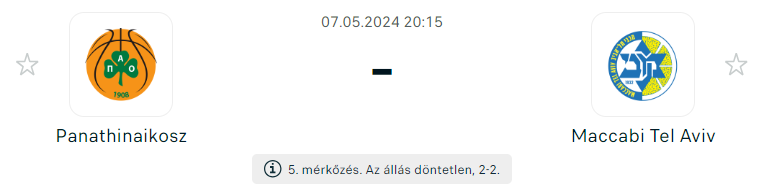 Ma kiderül, hogy melyik csapat kerül a Final Fourba, hiszen az ötödik összecsapás következik a Panathinaikosz és a Maccabi Tel Aviv között. A mai meccset ismét Athénban rendezik, mégpedig az OAKA Arénában. A hazai pálya előnye miatt sokan úgy vélik, hogy a görög klub közelebb áll ahhoz, hogy bebiztosítsa helyét a döntőben. Az izraeliek azonban már megmutatták, hogy tudnak nyerni a görög fővárosban. Remek mérkőzés várható!