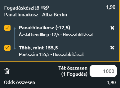 - Mindezek után magabiztos Panathinaikosz-győzelemre számítok. Ráadásul az Alba nagyon gyengén védekezik, és akár az is előfordulhat, hogy a görögök három számjegyű pontot szereznek! Ráadásul simán benne van az is, hogy az Alba nem a legerősebb felállásban fog játszani ezen a mérkőzésen, és Gonzalez pihentetni fog bizonyos játékosokat a bajnokságot szem előtt tartva! Tipp: Panathinaikosz -12,5 ÉS több mint 155,5 pont a mérkőzésen