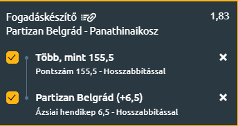 - A Partizan jelenlegi formáját és a hazai pálya előnyét figyelembe véve esélyesebb a győzelemre. A szerb csapat védekezése, különösen zónás stratégiája, hatékony lehet a Panathinaikos támadásainak megfékezésére. Emellett a Panathinaikos védelmi hiányosságai is lehetőséget teremtenek a Partizan számára, hogy saját ritmusában játsszon. Kis hendikeppel érdemes nyeretni a Partizant, valamint a pontok tekintetében is legalább 156 pont várható.