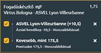 - A Virtus Bologna jelenlegi formája és sérülései jelentős hátrányt jelentenek. Tornike Shengelia hiánya érzékenyen érinti a támadójátékot, és Will Clyburn játéka is kérdéses, ami tovább nehezíti helyzetüket. Bár Dusko Ivanovic némi javulást hozott, a védekezés még mindig gyenge. Ezzel szemben az Asvel remek formában van, és a Theo Maledon vezette támadósor dinamikus, míg védekezésük is stabil. Ha megismétlik az elmúlt három meccs fegyelmezett játékát, van esélyük nyerni még idegenben is. Erős plusszos hendivel erősítem a Lyont és a jó védekezésük miatt az under oldaláról közelítek a pontok tekintetében: