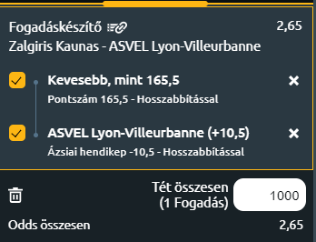 - A Zalgiris pont nem a legerősebb gárda, ha a játékosállományt nézzük. Az Asvel számára jobb idők jöhetnek és az elmúlt meccsen mutatott játék ad bizakodásra okot. A szorzók annyira el vannak billenve a litvánok oldalára, hogy érdemes lehet hendivel nyeretni a francia csapatot, tíz pontnál nem lesz több közte akkor sem, ha papírforma litván siker születik, a pontokat pedig under-oldalról közelítjük.