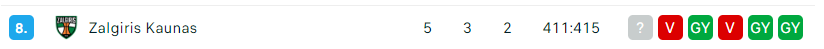 - A litván klub magabiztosan kezdte az új Euroliga-szezont. Három győzelmet szereztek és két vereséget szenvedtek, amivel a nyolcadik helyen állnak az Euroliga tabelláján. A Zalgiris a Virtus Bologna (82-79), a Crvena zvezda (79-74) és a Baskonia (99-82) ellen aratott győzelmet. Vereséget szenvedtek a Real Madridtól (79-93) és a Valenciától (72-87). A múlt heti, Valencia elleni teljesítményük azonban nem volt jó, annak ellenére, hogy a hazai közönség lelkes támogatását élvezték, Kazys Maksvytis edző csapata gyengén kezdett, és hagyta, hogy az ellenfél diktálja a tempót. A spanyol klub végig vezetve tartotta előnyét, és megérdemelt győzelmet aratott. Ennek ellenére az összbenyomás az, hogy a Zalgiris jól teljesít ebben a szezonban. A csapat korlátozott költségvetéssel rendelkezik, nem tudnak vagyonokat fordítani játékosigazolásra, ennek ellenére jó eredményeket érnek el, olyanokat, amelyek meghaladják az anyagi korlátokat. Az előző szezonban a várakozásokkal dacolva bejutottak a Top 8-ba, és idén is hasonló célt tűznek ki maguk elé. Az olyan kulcsjátékosok, mint Keenan Evans, Rolands Šmits és Edgaras Ulanovas a hátukon viszik a csapatot, de a többiek is felnőnek a feladathoz. Litvániában nemzeti sportág a kosárlabda, a csarnok mindig tele van, a szurkolók nagyon tudnak lelkesedni a kedvenceikért, ezt pedig igyekeznek meghálálni a csapatok.