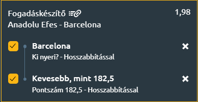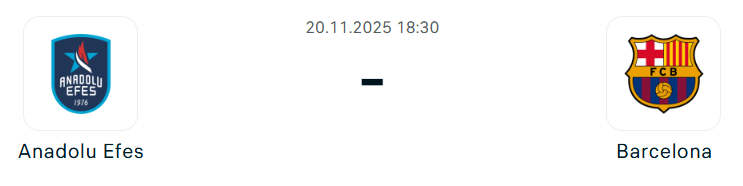 - A mérkőzés várható képe alapján az Anadolu Efesnek Larkin és több kulcsjátékos hiányában rendkívül nehéz lesz hatékony támadójátékot szervezni, különösen úgy, hogy a csapaton belüli hangulat sem ideális. Barcelona viszont egy új edző érkezésével, erősebb kerettel és nagyobb lendülettel vághat neki az összecsapásnak és meg is fogják nyerni azt! A pontokat illetően pedig nem lesz több, mint 182,5.