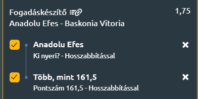 - A török csapat erős védekezése ellensúlyozhatja a Baskonia támadóerejét, míg a támadójátékuk elég változatos és hatékony ahhoz, hogy folyamatos nyomás alatt tartsák ellenfelüket. Baskonia képes lehet meglepetést okozni, ha Markus Howard extra napot fog ki, de az irányítóposzt hiányosságai és az ingadozó forma miatt ez kevésbé valószínű. Az Anadolu meccsgyőzelme jó esély, mellé minimum 161,5 pontot várhatunk.