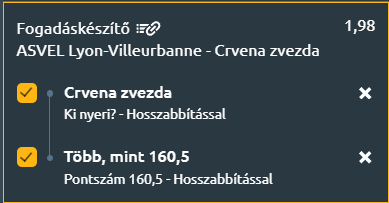 - A Crvena Zvezda meccsei a szezon második felében támadásorientáltak, miközben az Asvel hazai pályán gyakran jó dobóformát mutat, így legalább 161 pont várható a kimenetel szempontjából pedig egy kötelező feladat a Zvezdának!