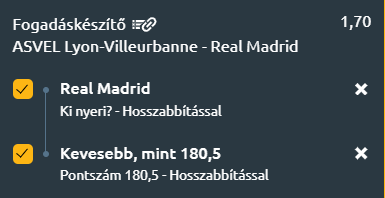 - A Real Madrid papíron erősebb csapat, simán nyernek is, de a sűrű meccsterhelés és az Asvel javuló hazai formája mellett mindkét oldalon visszafogottabb támadójáték várható, így a mérkőzés összpontszáma 180,5 alatt marad majd.