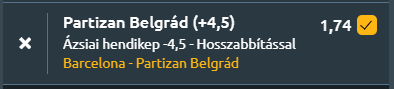 - Az elmúlt három hónap statisztikai mutatóit figyelembe véve a belgrádiak az EuroLeague egyik legerősebb formában lévő csapata. A Barcelona komoly sérülésproblémákkal küzd, és a szezon során több csalódást keltő vereséget is elszenvedett. Ez lehetőséget adhat a Partizannak arra, hogy végre idegenben is legyőzze a katalánokat, amit eddig nem sikerült megtenniük. A várakozások szerint a Partizan egy versenyképes és szoros mérkőzést fog játszani, hendikepes opciót használunk! Tipp: Partizan +4,5 – 1,74