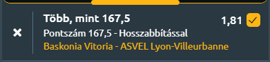 - A két csapat közel azonos támadó- és védőmutatókkal rendelkezik, ezért szoros összecsapásra lehet számítani. A Baskonia számára kulcsfontosságú lesz a lepattanók uralása és Marcus Howard ponterős játéka, míg az ASVEL sikerének kulcsa Theo Maledon megállíthatatlan formájában rejlik. A hazaiaknak előnyük lehet a pályaelőny és a győzelmi kényszer, míg a vendégek az utóbbi hetek lendületét próbálják kihasználni. A mérkőzésen kevés taktikai megkötöttség várható, így egy nyílt, pontgazdag összecsapásra lehet számítani, ahol a támadók dominálhatnak. Emiatt legalább 168 pont várható!