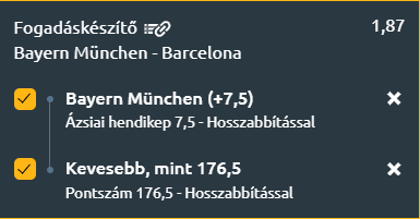 - Mindezek alapján a müncheni összecsapás előtt a formában lévő, önbizalomtól duzzadó Bayern tűnik esélyesebbnek, míg a széteső, edzőváltáson átesett Barcelona nehéz helyzetből próbál talpra állni. +7,5-es hendikeppel megerősítjük a Bayern győzelmét, a pontok tekintetében pedig nem várható több, mint 176,5 egység!
