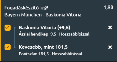 - A Bayern az edzőváltás után érezhetően javuló formát mutat, amit az utóbbi öt mérkőzésen aratott öt győzelem is alátámaszt, míg a Baskonia továbbra is nyeretlen idegenben. A jelenlegi körülmények alapján a hazaiak esélyesebbek, de a különbség koránt sincs akkora, amit a szorzók mutatnak! Szoros meccset várok, nyerhet a Bayern, de nem fog 10 pontot odatenni közé, egyszámjegyű lesz a különbség, ha egyáltalán nyernek a németek. A pontok tekintetében pedig a hazaiak gyenge támadójátéka és a Baskonia idegenbeli gyengesége alapján kevesebb, mint 181,5 pontot várok.