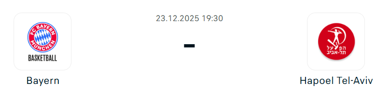 - A Bayern nyolcmeccses Euroliga-vereségsorozat után, egy súlyos monacói zakót követően elküldte Gordon Herbertet, miközben mérlege 5–12-re romlott, és játéka összképében is komoly gondokat mutat. A bajorok legfőbb problémája a gyenge támadójáték, mindössze 77,8 pontos átlaggal, sok rossz döntéssel és kényszerített dobással, miközben több kulcsember formája visszaesett vagy nem találta még a helyét. Andreas Obst kevesebb labdát kap, Isiaha Mike teljesítménye visszaesett, Vladimir Lucic nem tud stabil lenni, Xavier Rathan-Mayes és Justinian Jessup pedig eddig nem váltotta be a hozzájuk fűzött reményeket, amit sérülések is súlyosbítanak. Hapoel Tel Aviv egy vereség ellenére is vezeti a tabellát 12–5-ös mérleggel, és újoncként is elit támadószámokat produkál. Elijah Bryant kiemelkedő formában van, Antonio Blakeney ponterőssége állandó veszélyt jelent, Tyler Ennis legutóbb idénycsúcsot hozott, miközben a palánk alatt Dan Oturu és Johnathan Motley minőségi megoldásokat kínál. Bár Vasilije Micic nincs csúcsformában, a keret mélysége és támadópotenciálja így is jelentős, Yam Madar visszatérése pedig tovább bővíti a rotációt. Hatalmas vendégfölény várható támadásban, főként a festékben, ahol a Bayern védekezése komoly gondokkal küzd!